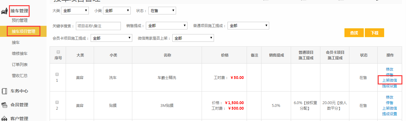 【接车项目管理】;