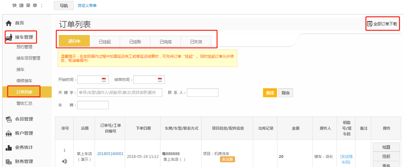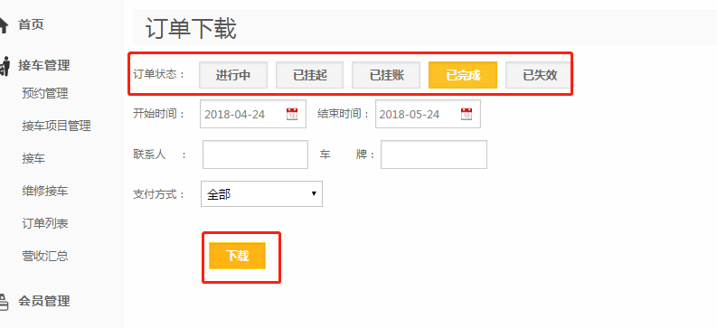 注意事项:订单状态只支持单项选择,只能选择一种状态;