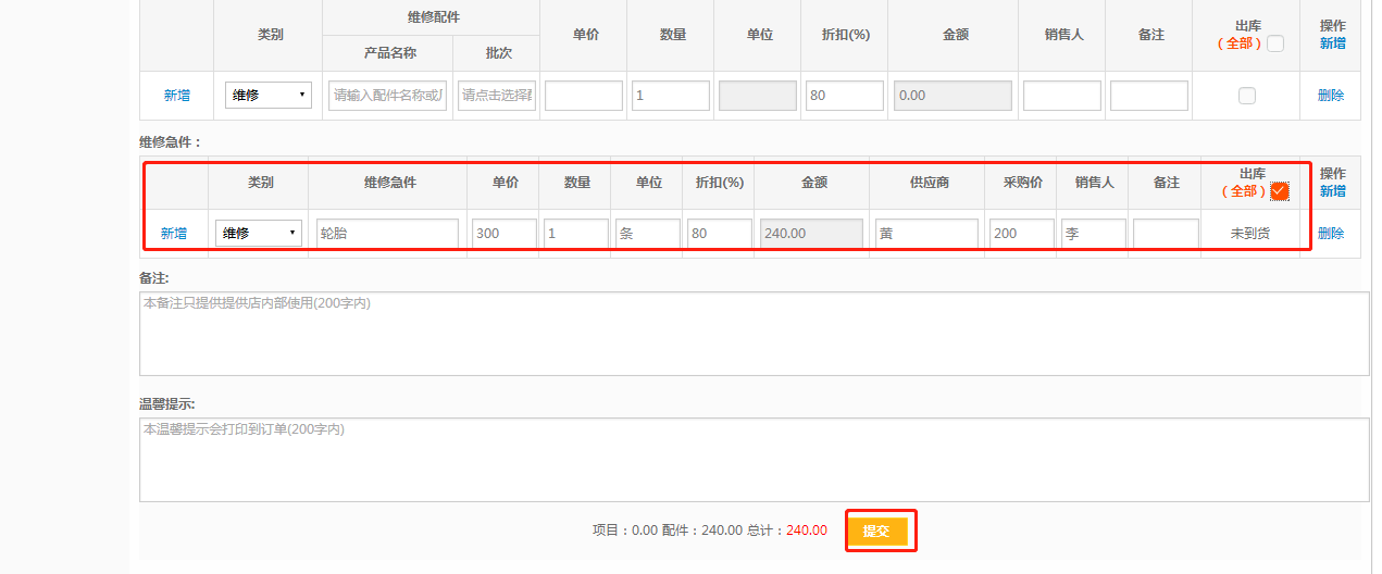 第三步:填写维修急件、供应商、采购价、销售人;