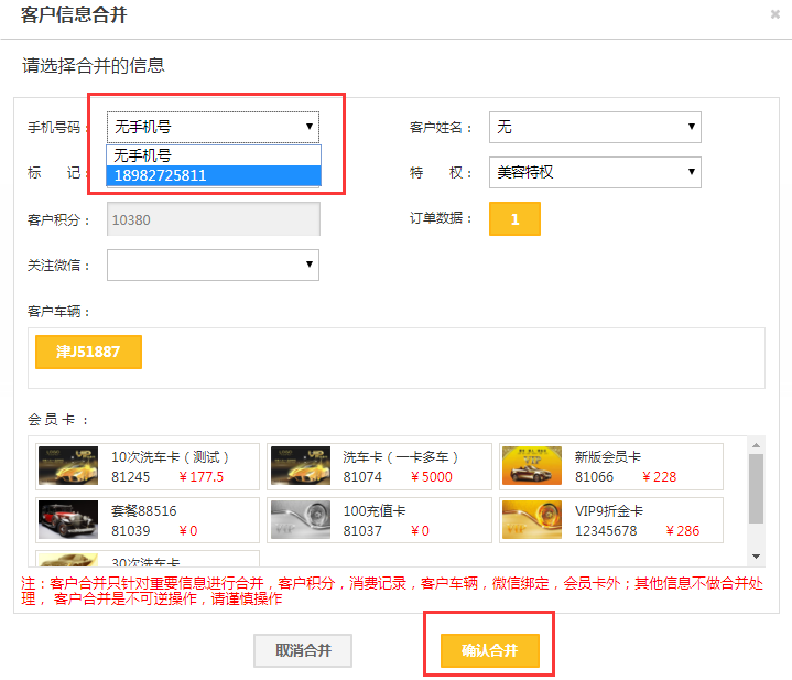 问题1:客户信息保存时提示“处理失败!手机号码xxx已被会员xxx占用,请核实”“