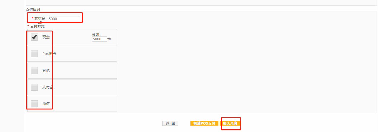 第四步:填写实收金额,选择支付方式,点击【确认充值】