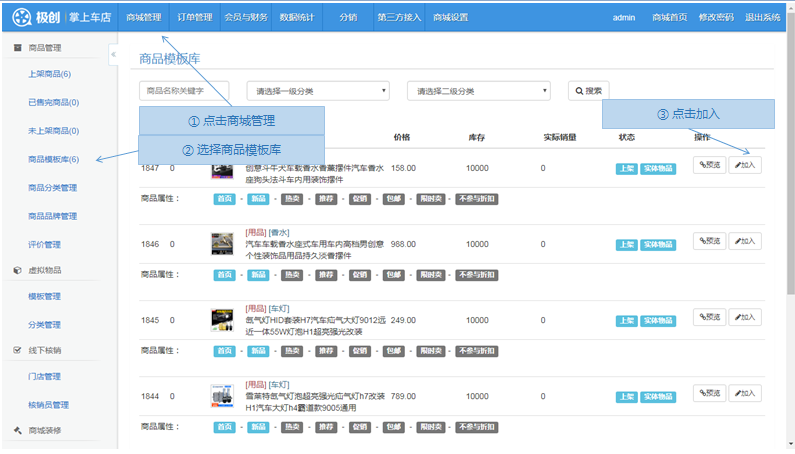 步骤1.微商城>商城管理>商品模板库