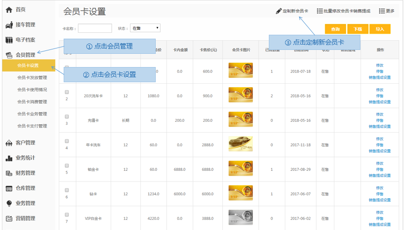 步骤1.掌上车店>会员管理>会员卡设置>定制新会员卡