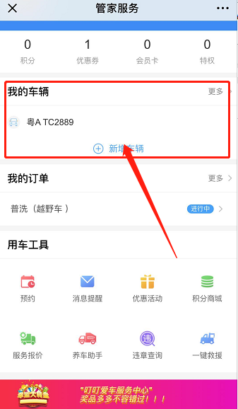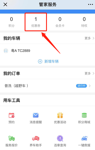 步骤2.管家服务页面>养车助手
