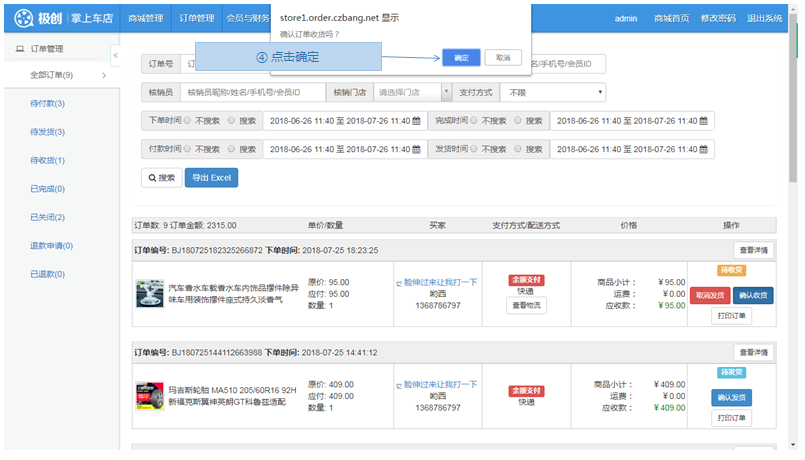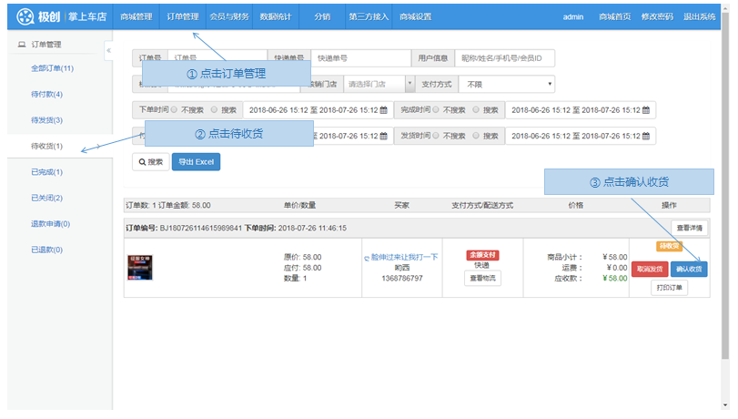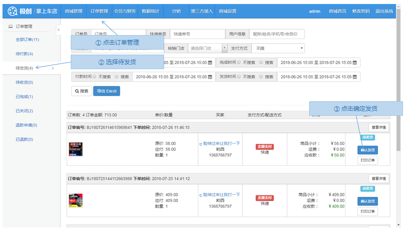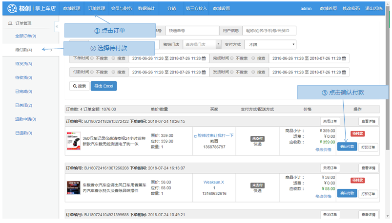 步骤1.微商城>订单管理