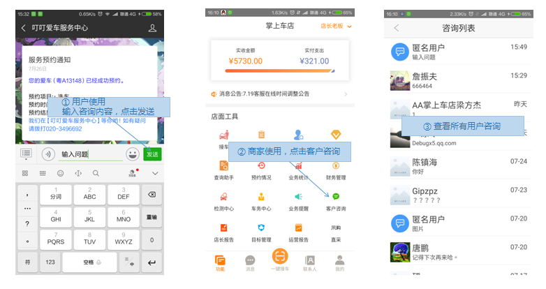 步骤2.询问的客户,商家在APP客户咨询进行查看