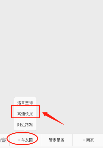 掌上车店公众号的“高速快报”功能,为车主提供一个日常高速公路路况查询工具,解决车主在出行之前对规划路段进行了解。车主要通过点击“车友圈”进入高速快报功能进行查询。【如下图1、2、3所示】