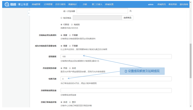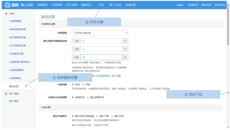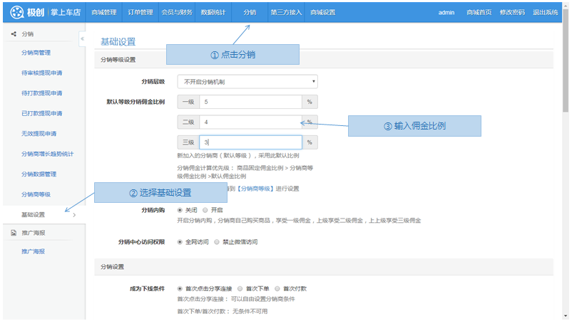 步骤1.微商城>分销>基础设置
