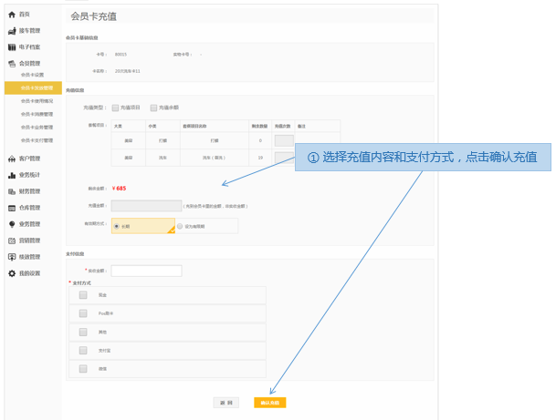 步骤2.选择充值的会员卡>充值