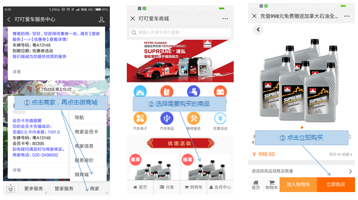 结合SaaS系统日常店务运营,提供给车主与店面的接收入口,由掌上车店提供定期的文章推送运营店面品牌,通过定制活动实现引流,车主了可以在店面公众号上查询活动与自身在店面所有的消费记录,查询车辆的保养进度等操作