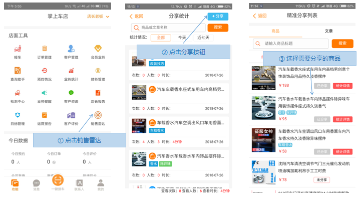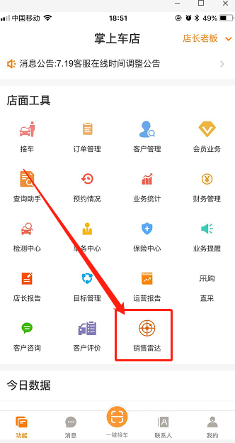 步骤1.掌上车店app>销售雷达