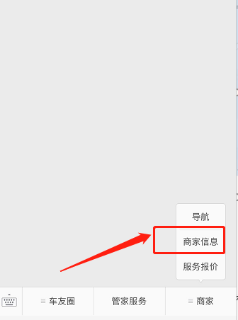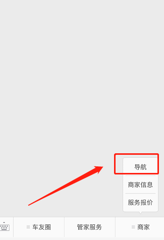 步骤1.在公众号中选择菜单>商家>导航