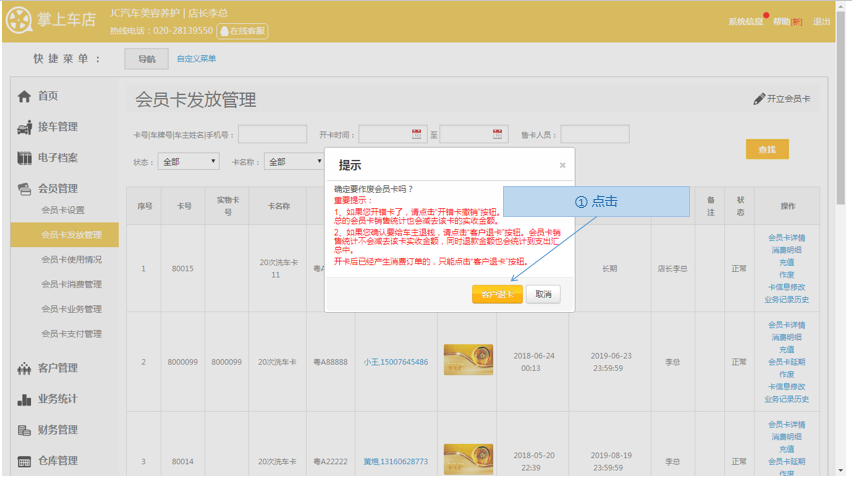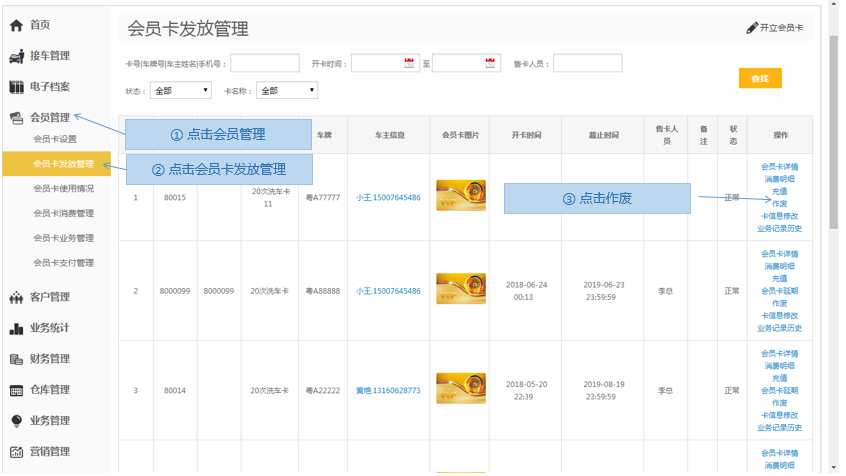 步骤2.选择需要退卡的会员卡>点击作废
