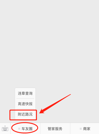 掌上车店公众号的“附近路况”功能,为车主提供一个日常高速公路路况查询工具,解决车主在出行之前对规划路段进行了解。车主要通过点击“车权圈”进入高速快报功能进行查询。【如下图1、2、3、4所示】