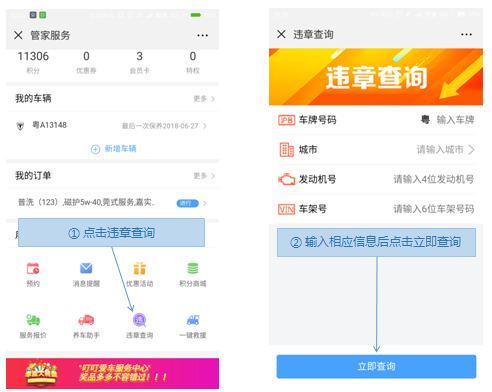 步骤2.管家服务页面>违章查询