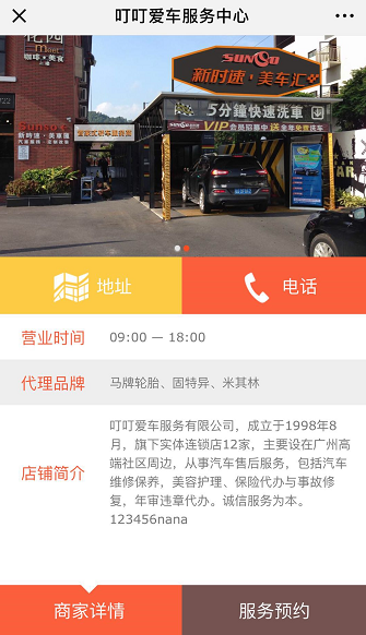 掌上车店的商家“服务报价”功能主要为商家提供自己门店各项目的报价情况,方便关注本门店的车主进行了解各项目信息。车主点击商家的“商家信息”菜单功能进入商家信息介绍页面。【如下图1、2所示】
