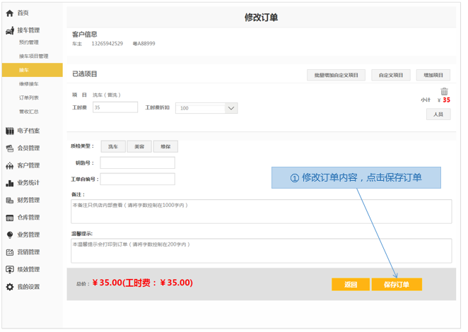 步骤3.修改订单内容>保存订单