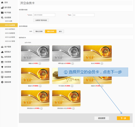 步骤3.选择开立的会员卡>下一步