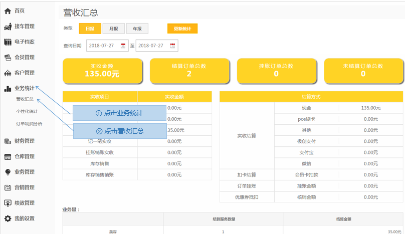 步骤1.掌上车店>营收汇总