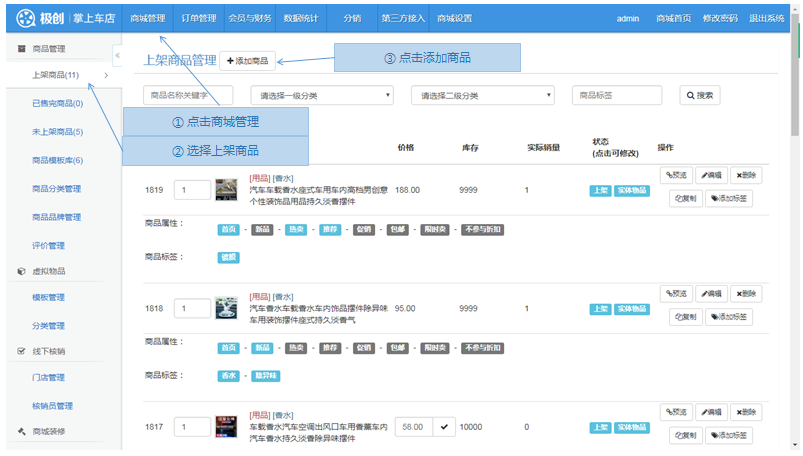 步骤1.掌上车店微商城>商城管理