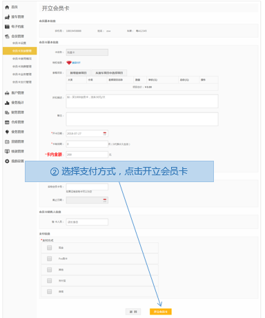 步骤4.选择支付方式>开立会员卡