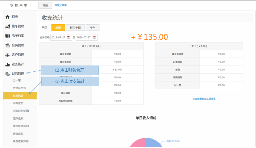 步骤3.掌上车店>财务管理>收支统计