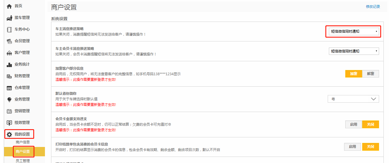 注意事项:如果设置了微信通知,车主手机号码如果未绑定微信公众号,则不显示微信通知;
