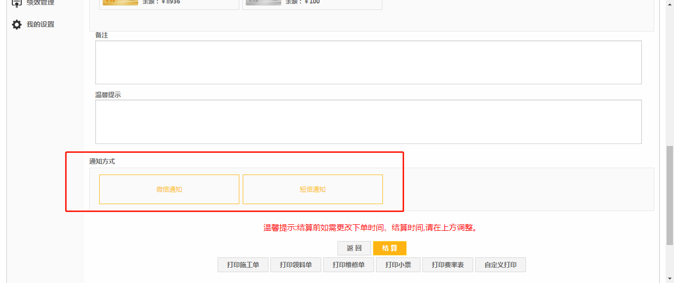 第三步:设置好之后,订单结算时就可以看到对应的通知方式(这个时候如果不想给车主发信息可不选择);