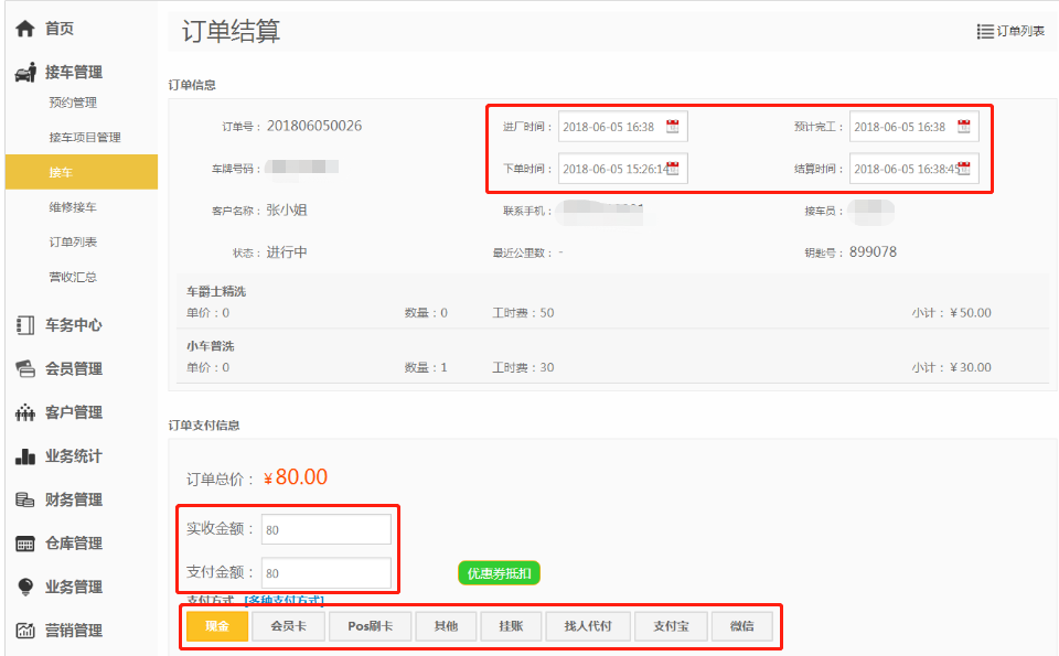 如果实收金额小于订单总价,则剩余部分的金额为优惠金额;