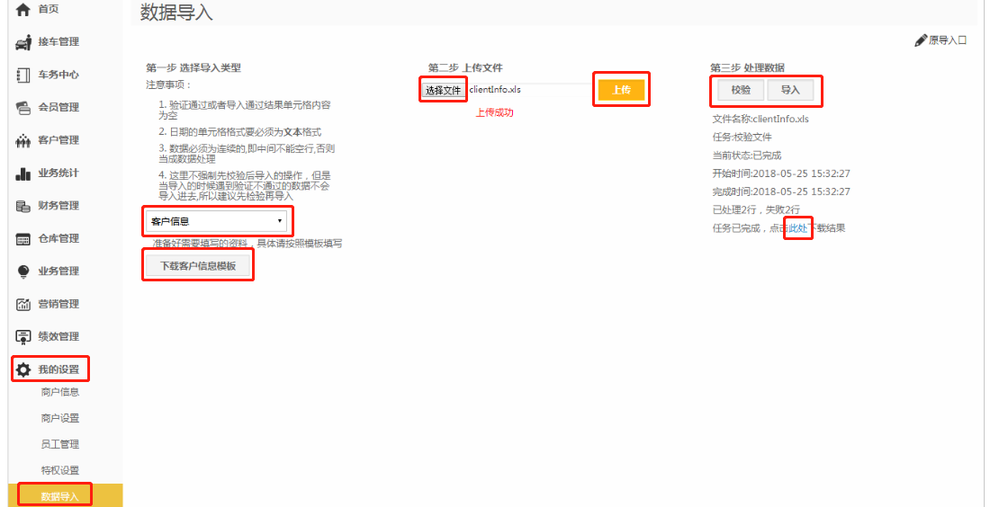 1.需要将客户信息按照下载出来的模板要求进行填写;