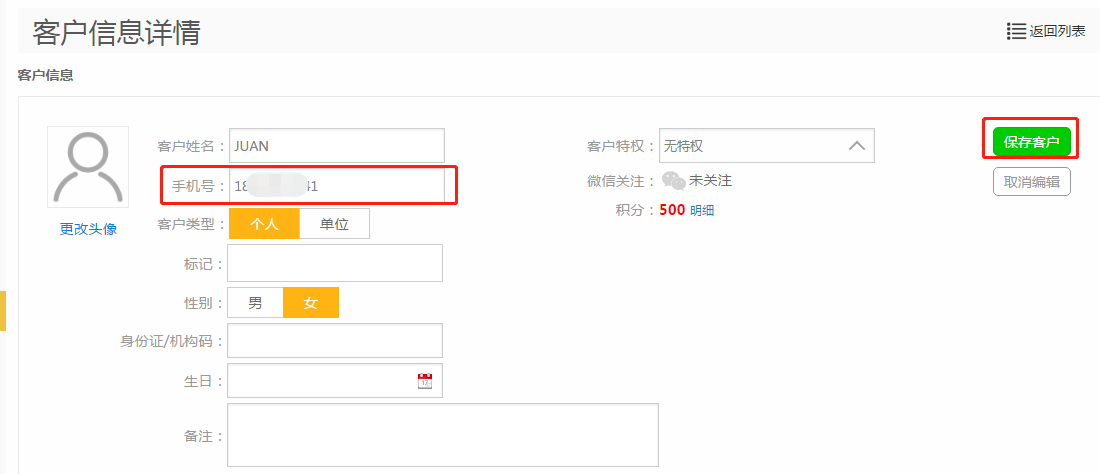 第六步:点击【保存客户】;