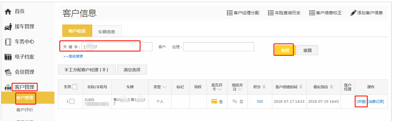 第二步:进行模糊搜索,找到这个客户信息;