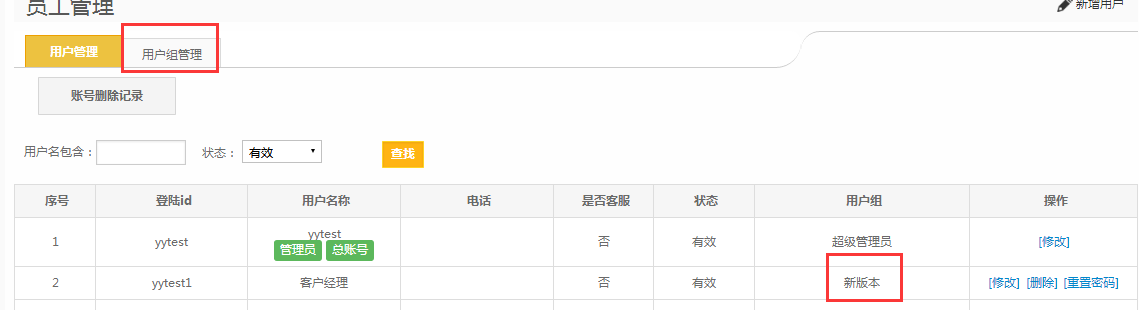 第一步:点击【我的设置】-【员工管理】-【用户组管理】,需要留意要更改的授权的员工是哪个用户组的;