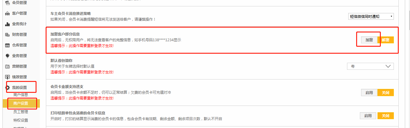 (启用后,无权限用户,将无法查看客户的完整信息,如手机号码138****1234显示)