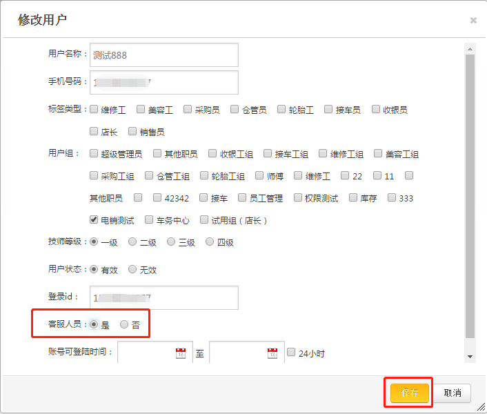 第三步:在客服人员这里选择“是”,然后点击保存;
