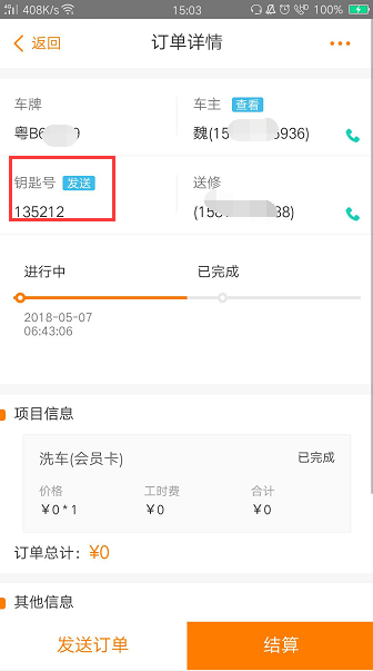操作:订单管理—点击对应订单—发送钥匙号—随机生成后确认发送;
