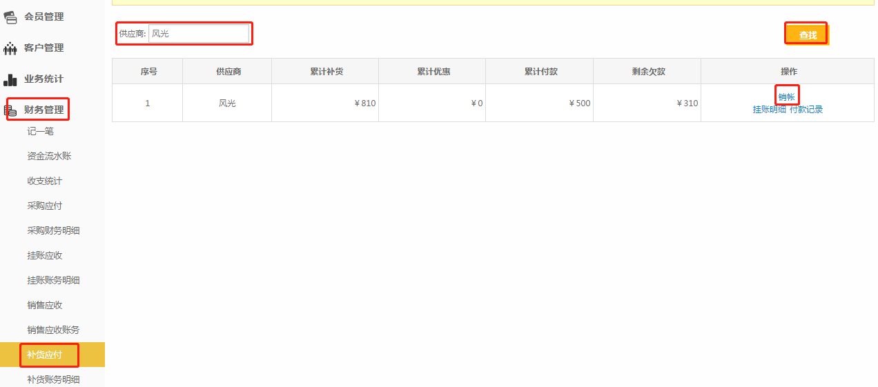 第一步:进入【财务管理】-【补货应收】;