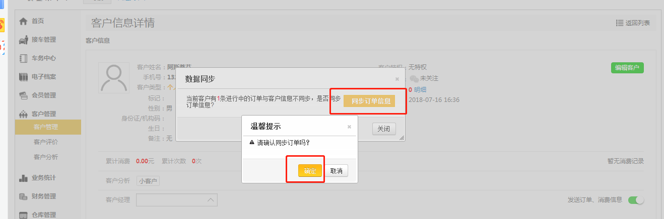 【注意:下单后修改客户信息没有点击【同步订单】的就不会同步到订单上的】