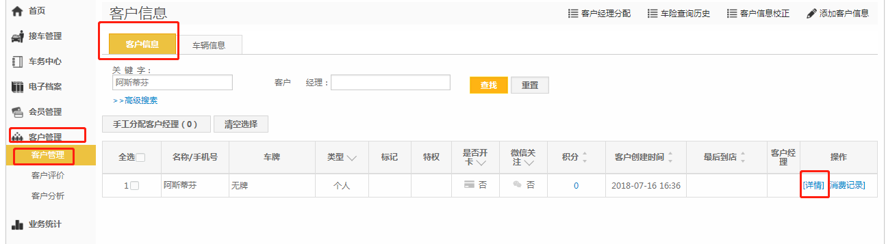 第二步:通过关键字搜索查找车主,点击【详情】;