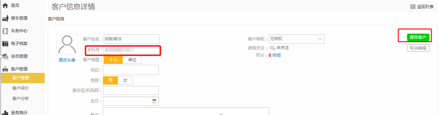 第四步:填写【手机号】,点击【保存客户】;
