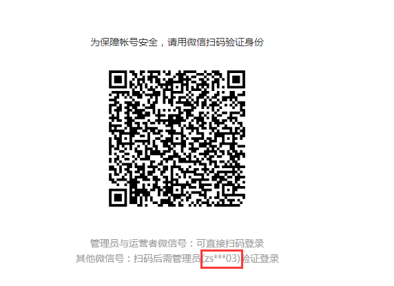 第三步:管理员微信账号扫描对应二维码验证登录(下方会提示管理员微信号);