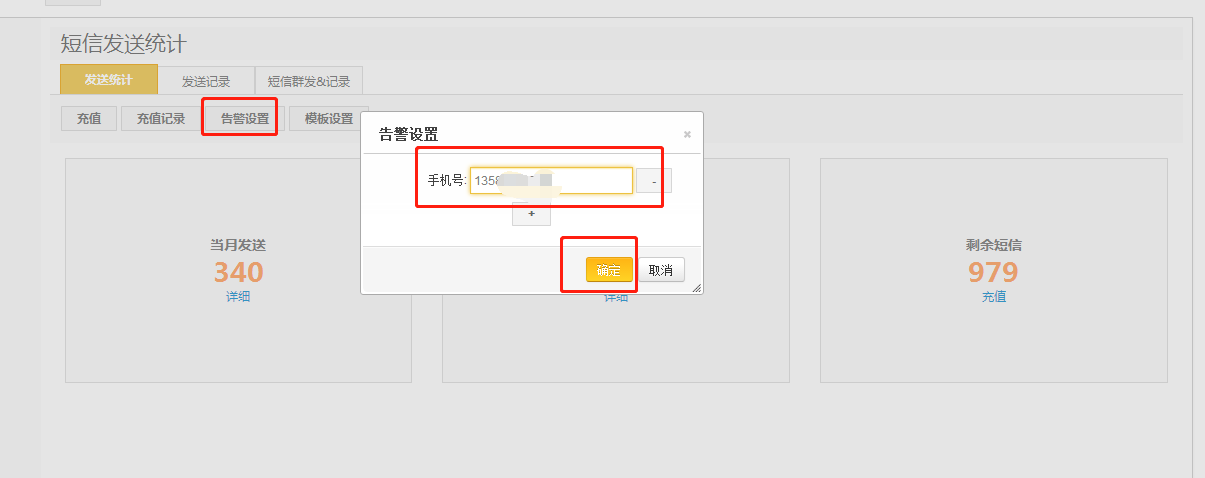 【注意事项:短信告警是短信数量低于一定次数会自动发送信息提醒告警对象】