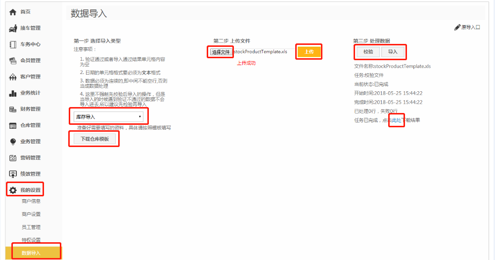 1.需要将库存产品按照下载出来的模板要求进行填写;