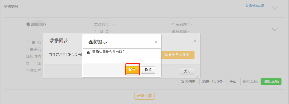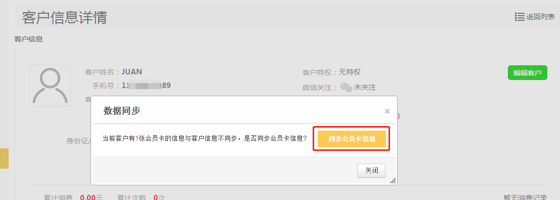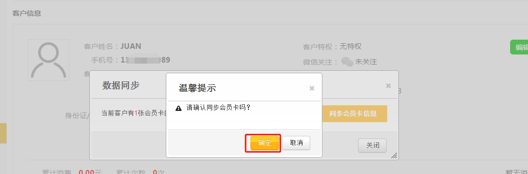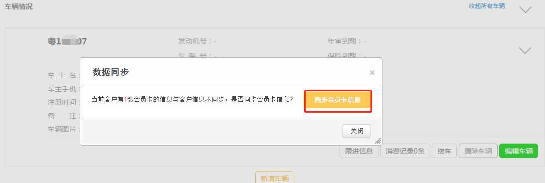 第六步:在弹出来的数据同步,点击【同步会员卡信息】;
