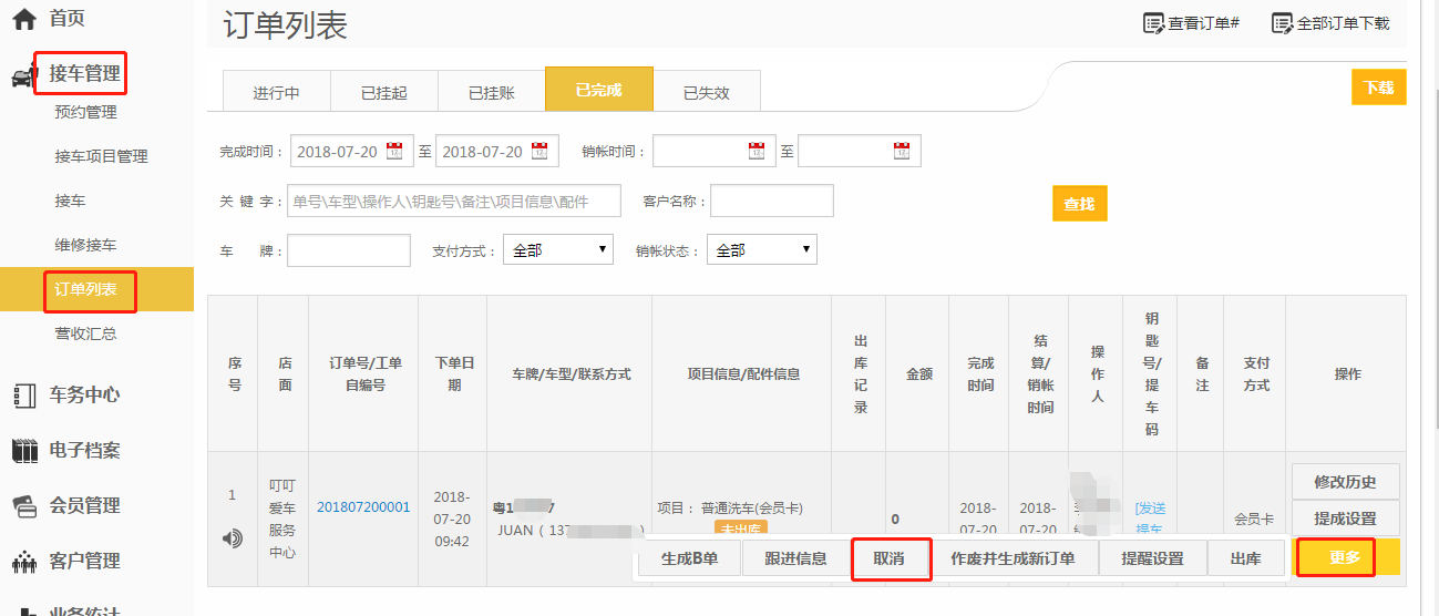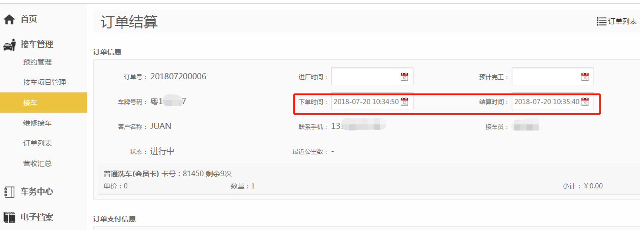 第一步:【接车管理】-【订单列表】;