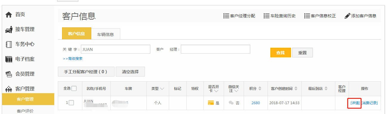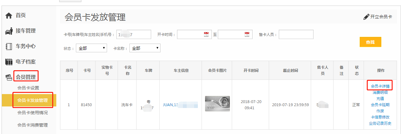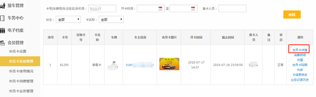 第三步:搜索出会员卡后,点击【会员卡详情】;