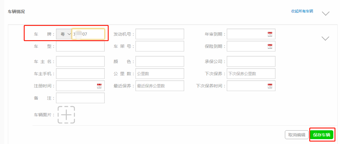 第五步:修改好车牌之后点击【保存车辆】;