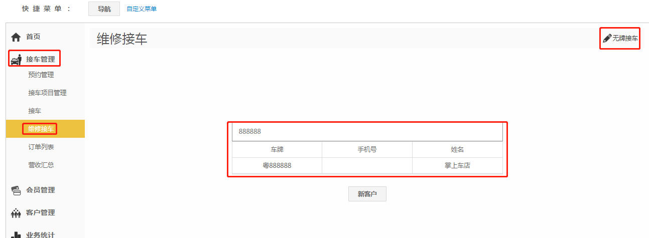 注意事项:1. 无牌车可在右上角点击【无牌接车】;