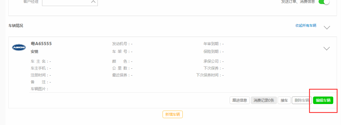 第三步:在客户详情拉到车辆信息点击【编辑车辆】;