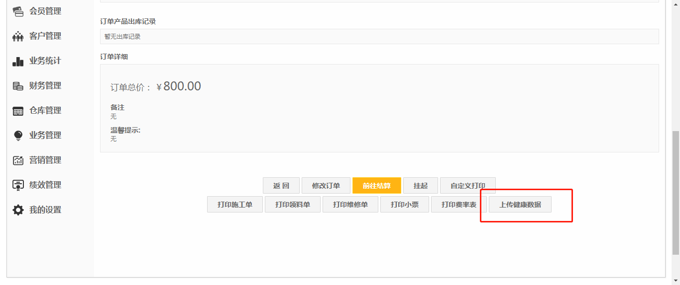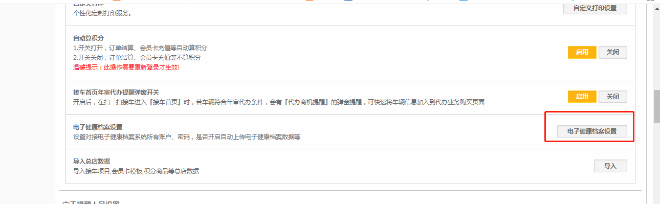 注:自动同步订单到电子健康档案系统不建议开启,上传到健康档案后订单作废无法撤销已经上传的数据,需要登录当地的健康档案系统去删除。(部分健康档案系统不支持删除)